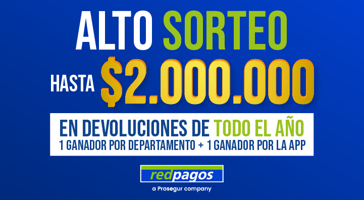 Sorteamos hasta $2.000.000 en devoluciones de todo el año ¡Un ganador por cada departamento y otro exclusivo de Miredpagos App! Registrate acá y mencioná tu cédula cada vez que vayas a un local, con cada movimiento generás chances de ganar ¡Hay 20 ganad